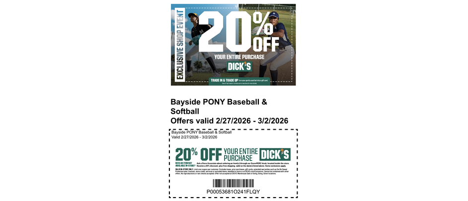 Bayside Pony (BP) Baseball and Softball League, we want you and your child to