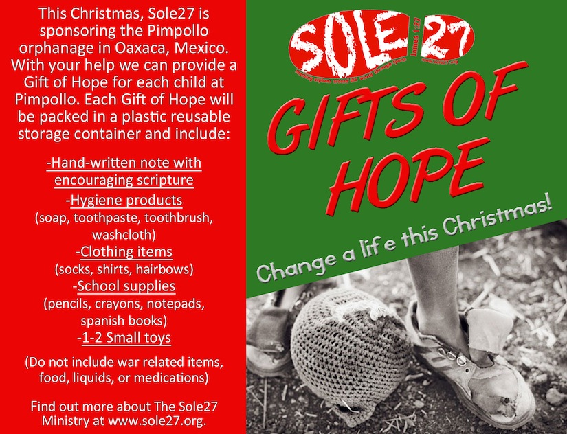 All donations will go to support sports ministry for orphans around the world. Thank you for supporting the mission endeavors of Sole27 and our missionary partners.