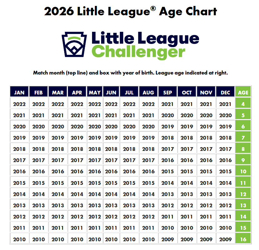 Your player’s league age is determined by the Little League Baseball and Little League Softball Age Charts. The dates for baseball and softball are different, but each determines the division in which your Little Leaguer will play this season.